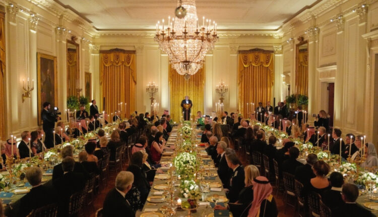 Σε ένα ιδιαίτερα λαμπερό δείπνο, ο πρόεδρος των ΗΠΑ, Ντόναλντ Τραμπ, υποδέχθηκε τον πρίγκιπα διάδοχο της Σαουδικής Αραβίας, Μοχάμεντ μπιν Σαλμάν, στον Λευκό Οίκο. Η περίσταση, που συγκέντρωσε 120 υψηλούς προσκεκλημένους, από τους οποίους οι 30 προέρχονταν από τη σαουδαραβική αντιπροσωπεία, ανέδειξε τη σημασία των διμερών σχέσεων, φέρνοντας κοντά κορυφαίες προσωπικότητες από τον χώρο των επιχειρήσεων και του αθλητισμού.