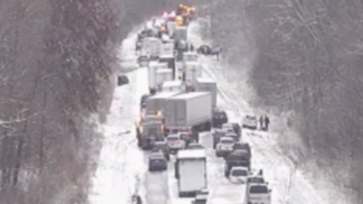 Μια μαζική καραμπόλα, στην οποία ενεπλάκησαν περίπου 45 οχήματα, σημειώθηκε στον αυτοκινητόδρομο Interstate 70 της Ιντιάνα, κατά τη διάρκεια των εορτασμών της Ημέρας των Ευχαριστιών. Το περιστατικό προκλήθηκε λόγω της έντονης χιονόπτωσης που έπληξε την περιοχή το Σάββατο, οδηγώντας, παράλληλα, σε εκατοντάδες ακυρώσεις πτήσεων.