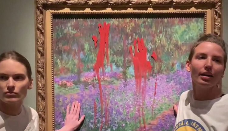 Το περιστατικό έλαβε χώρα στις 14 Ιουνίου 2023, όταν δύο νεαρές γυναίκες, αφού βούτηξαν τα χέρια τους σε κόκκινη μπογιά, την απλώσαν στην προστατευτική βιτρίνα του πίνακα «Ο κήπος του καλλιτέχνη στο Ζιβερνί» (Le Jardin de l’artiste à Giverny, 1900). Ο πίνακας είχε δανειστεί εκείνη την περίοδο από το μουσείο Ορσέ και εκτιθέταν στο εθνικό μουσείο της Σουηδίας (Nationalmuseum), στο πλαίσιο έκθεσης με θέμα τους κήπους και τη φύση.
