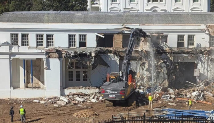 Οργανισμός προστασίας ιστορικών κτιρίων ζητά να σταματήσουν οι εργασίες για την αίθουσα χορού, επικαλούμενος έλλειψη εγκρίσεων και διαβούλευσης.