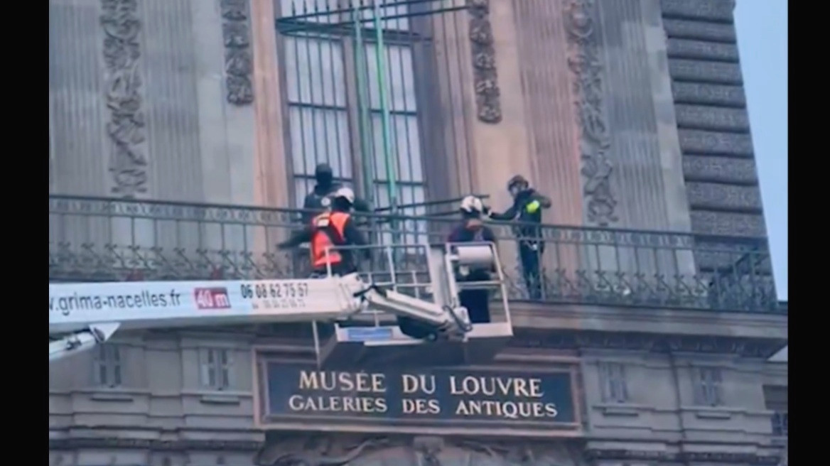 Ένας ανυψωτικός γερανός χρησιμοποιήθηκε το πρωί της Τρίτης για την πρόσβαση σε μπαλκόνι του δεύτερου οροφοφ, όπου εργαζόμενοι ασφάλισαν το συγκεκριμένο παράθυρο με νέες μεταλλικές μπάρες. Το πλέον επισκέψιμο μουσείο του κόσμου προσπαθεί ακόμη να διαχειριστεί τις συνέπειες των παραλείψεων ασφαλείας που οδήγησαν στην κλοπή βασιλικών κοσμημάτων αξίας περίπου 102 εκατομμυρίων δολαρίων, τα οποία παραμένουν άφαντα.