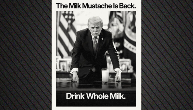 Σε μια εντυπωσιακή κίνηση που θυμίζει τις θρυλικές διαφημιστικές καμπάνιες του παρελθόντος, το Υπουργείο Γεωργίας των ΗΠΑ επέλεξε τον Ντόναλντ Τραμπ για να προωθήσει τις νέες συστάσεις για τη διατροφική πυραμίδα, εστιάζοντας στην κατανάλωση γαλακτοκομικών προϊόντων. Σε μια ανάρτηση που έκανε τον γύρο του διαδικτύου, ο πρώην πρόεδρος εμφανίζεται με “μουστάκια” από γάλα, συνοδευόμενος από το μήνυμα: “Τα ‘μουστάκια από γάλα’ επιστρέφουν, να πίνετε πλήρες γάλα”.