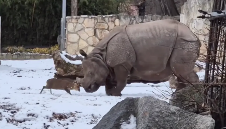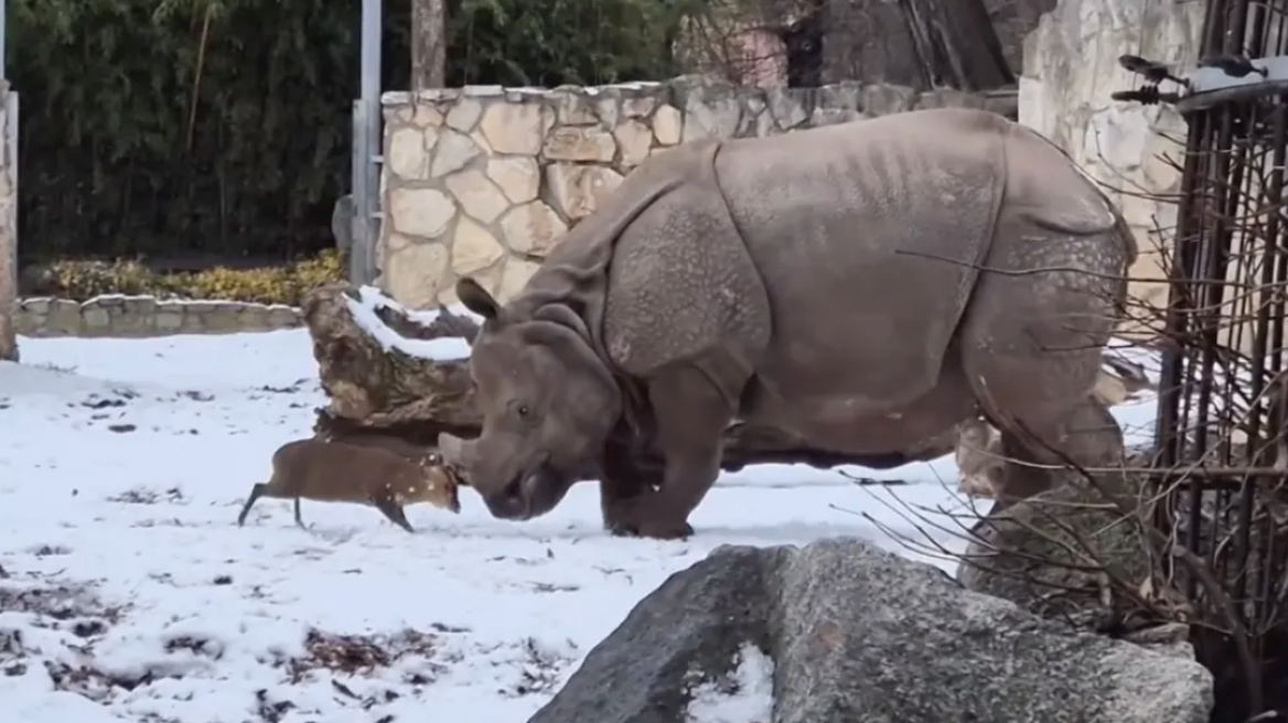 Το ελάφι που “έριξε” τον ρινόκερο σε ζωολογικό κήπο της Πολωνίας