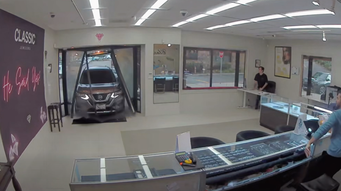 Ένα βίντεο από κάμερα ασφαλείας σε κοσμηματοπωλείο της Νότιας Καλιφόρνιας κατέγραψε με κάθε λεπτομέρεια τη στιγμή της εισβολής μιας ομάδας ληστών, οι οποίοι εισέβαλαν στο κατάστημα χρησιμοποιώντας ένα SUV το μεσημέρι της περασμένης Παρασκευής.