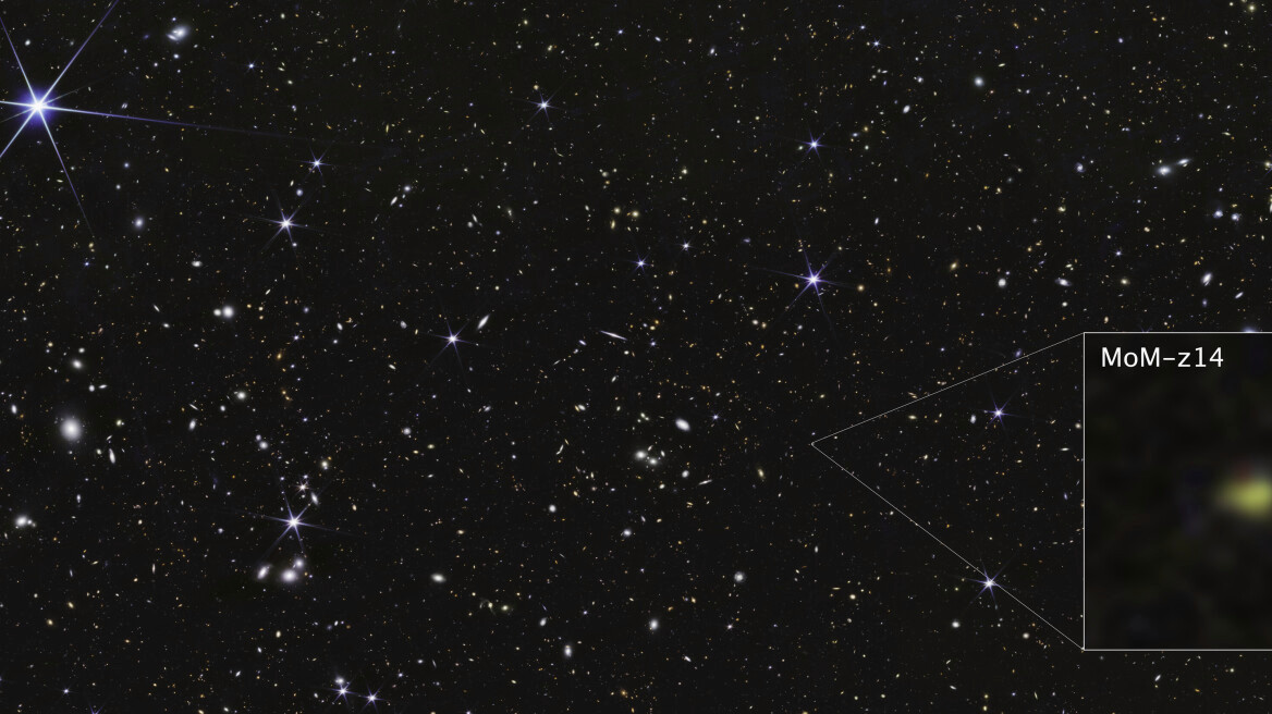 Το διαστημικό τηλεσκόπιο James Webb, προϊόν συνεργασίας της NASA, της ESA και της Καναδικής Υπηρεσίας Διαστήματος (CSA), έστρεψε ξανά το βλέμμα του στο μακρινό, πρώιμο Σύμπαν, επιβεβαιώνοντας την ύπαρξη ενός λαμπρού γαλαξία που υπήρχε μόλις 280 εκατομμύρια χρόνια μετά τη Μεγάλη Έκρηξη. Ο γαλαξίας MoM-z14 προσφέρει συναρπαστικές ενδείξεις για την ιστορία του Σύμπαντος και για το πόσο διαφορετικό ήταν το πρώιμο στάδιο της ύπαρξής του από τις έως τώρα προβλέψεις των αστρονόμων.