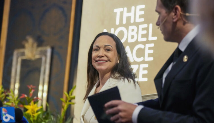 Η Μαρία Κορίνα Ματσάδο βραβεύτηκε για τον αγώνα της ενάντια στη δικτατορία στη Βενεζουέλα. Κατά την παραλαβή του βραβείου, το αφιέρωσε, μεταξύ άλλων, στον Αμερικανό πρόεδρο Ντόναλντ Τραμπ, ο οποίος είχε δηλώσει επανειλημμένα ότι το άξιζε ο ίδιος. Τελικά, ο Τραμπ έλαβε το βραβείο αργότερα, με τη Νορβηγική Επιτροπή Νόμπελ να διευκρινίζει τότε ότι το βραβείο παραμένει άρρηκτα συνδεδεμένο με το άτομο ή τον οργανισμό που ορίζεται ως νικητής.
