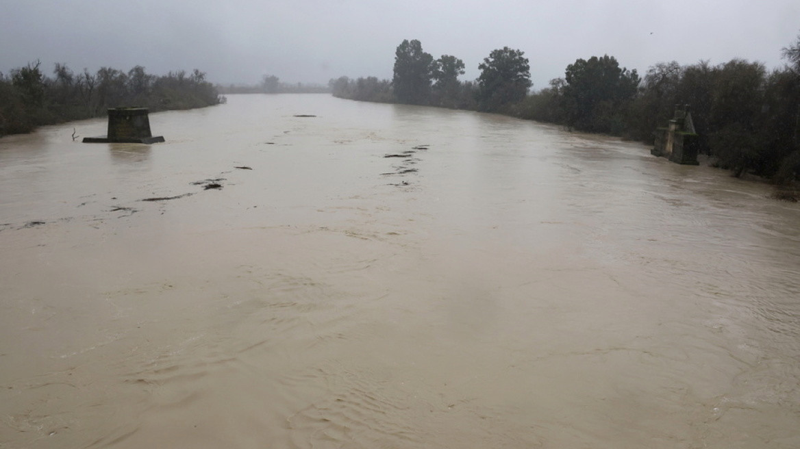 Νέο κύμα κακοκαιρίας σαρώνει Ισπανία και Πορτογαλία, με 14 ποταμούς και 10 φράγματα στην Ανδαλουσία να διατρέχουν ακραίο κίνδυνο.