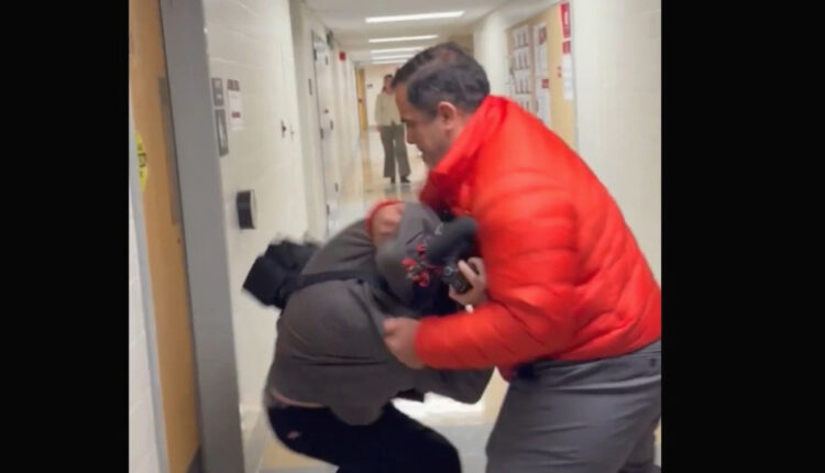 Κατά τη διάρκεια της προσπάθειας αυτής, ο καθηγητής Πέρεζ φέρεται να ενεπλάκη σε σωματική αντιπαράθεση με τον δημοσιογράφο Νιούμαν. Το περιστατικό, το οποίο έχει καταγραφεί σε βίντεο, κατέληξε με τον Νιούμαν να πέφτει στο έδαφος.