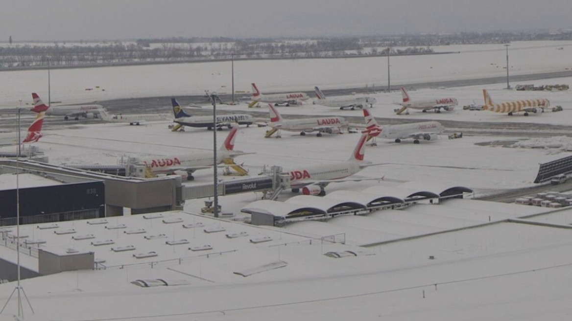 Σύμφωνα με ανακοίνωση του αεροδρομίου, η εναέρια κυκλοφορία «λόγω έντονων χιονοπτώσεων, έχει διαταραχθεί αυτήν τη στιγμή». Περισσότερες από 230 πτήσεις, τόσο αφίξεις όσο και αναχωρήσεις, καταγράφηκαν ως εκτρεπόμενες, ακυρωμένες ή με καθυστερήσεις. Οι αρχές του αεροδρομίου συνέστησαν στους επιβάτες των οποίων οι πτήσεις ακυρώθηκαν να μην προσέρχονται στον χώρο του αεροδρομίου, ενώ ένας εκπρόσωπος ανέφερε στο πρακτορείο ειδήσεων APA ότι το στρώμα χιονιού στο έδαφος έφτανε τα 20 εκατοστά.