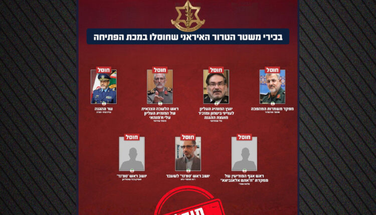 Οι Ισραηλινές Ένοπλες Δυνάμεις (IDF) ανακοίνωσαν την «εξουδετέρωση» της αμυντικής ηγεσίας του ιρανικού καθεστώτος κατά το αρχικό κύμα επιθέσεων, κατονομάζοντας τρεις κορυφαίους αξιωματούχους της Τεχεράνης που, σύμφωνα με τους ισχυρισμούς τους, σκοτώθηκαν.