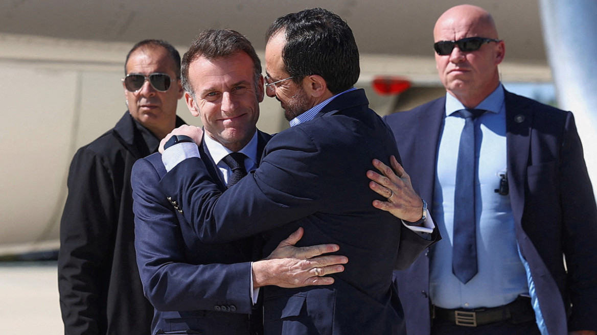 Ο έντονος χαιρετισμός ανάμεσα στον Κύπριο πρόεδρο Νίκο Χριστοδουλίδη και τον Γάλλο ομόλογό του περιγράφηκε από τη Daily Mail ως «η αγκαλιά που ντρόπιασε τον Στάρμερ». Η επίσκεψη Μακρόν πραγματοποιήθηκε την ώρα που το γαλλικό αεροπλανοφόρο Σαρλ ντε Γκωλ, συνοδευόμενο από πλοία τεσσάρων κρατών-μελών της Ευρωπαϊκής Ένωσης, κατευθυνόταν προς την Ανατολική Μεσόγειο για να συμβάλει στην άμυνα της Κύπρου, κατόπιν αιτήματος του Νίκου Χριστοδουλίδη.