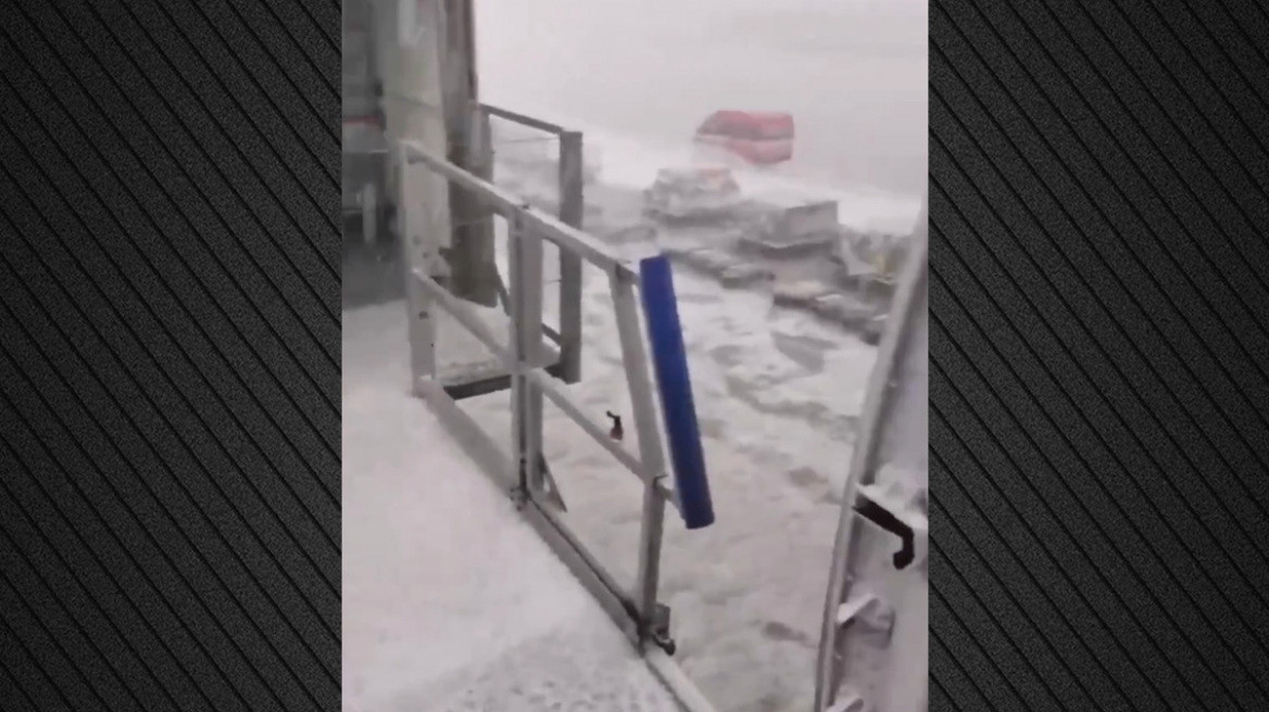 Σφοδρή καταιγίδα με χαλαζόπτωση προκάλεσε σοβαρές διαταραχές, πλημμυρίζοντας τους διαδρόμους απογείωσης και εισχωρώντας στις εγκαταστάσεις του αεροδρομίου.