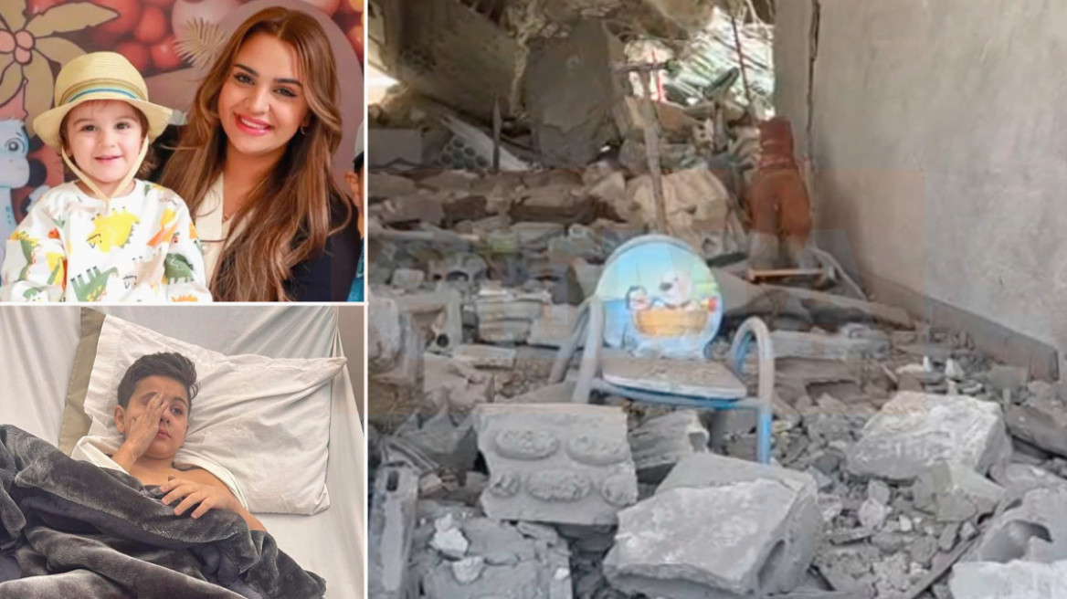 Οι εικόνες από το σημείο της επίθεσης, που μετέδωσε ο απεσταλμένος του protothema.gr, Μαρίνος Αλειφέρης, αποτυπώνουν το μέγεθος της καταστροφής. Το σπίτι της οικογένειας έχει μετατραπεί σε σωρό ερειπίων, με προσωπικά αντικείμενα να είναι διασκορπισμένα παντού. Ένα παιδικό καθισματάκι, ένα ξύλινο αλογάκι, ένα πατίνι μαρτυρούν ότι πριν λίγες ώρες το συγκεκριμένο σπίτι ήταν η εστία μιας οικογένειας που δεν υπάρχει πια.