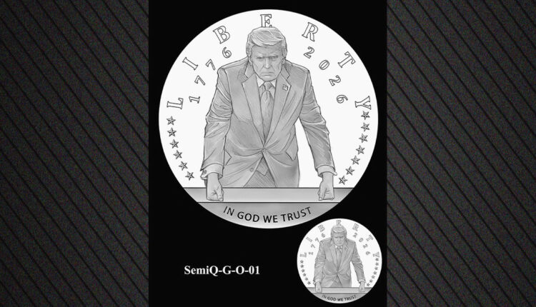 Το νόμισμα θα απεικονίζει τον Τραμπ με βλοσυρό ύφος, να γέρνεται προς τα εμπρός πάνω από ένα γραφείο και να κοιτάζει μπροστά. Το σχέδιο βασίζεται σε μια φωτογραφία του που βρίσκεται στην Εθνική Πινακοθήκη Πορτρέτων της Ουάσιγκτον. Στην κορυφή θα αναγράφεται «στον Θεό που πιστεύουμε», ενώ τη μορφή του προέδρου των ΗΠΑ θα περιβάλλει η λέξη «ελευθερία» με κεφαλαία γράμματα.