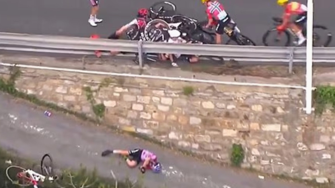 Σφοδρή πτώση και μεταφορά στο νοσοκομείο για την Ιταλίδα ποδηλάτισσα μετά από καραμπόλα στον κλασικό αγώνα.