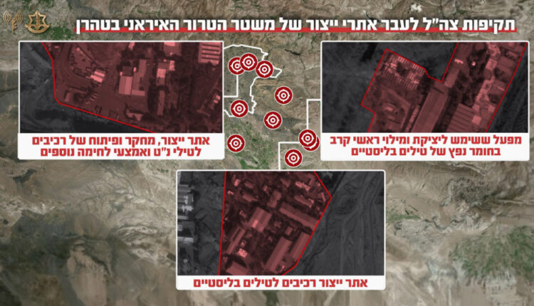 Σύμφωνα με τον στρατό, έως αύριο, περίπου το 70% της ιρανικής στρατιωτικής βιομηχανίας, που αφορά βασικές εγκαταστάσεις ανάπτυξης όπλων απειλητικών για το Ισραήλ, θα έχει στοχοποιηθεί. Επιπλέον, άλλες, λιγότερο κρίσιμες εγκαταστάσεις στρατιωτικής παραγωγής ενδέχεται να στοχοποιηθούν στο μέλλον, καθώς οι IDF προετοιμάζονται για πιθανή σύγκρουση με το Ιράν που μπορεί να διαρκέσει αρκετές εβδομάδες.