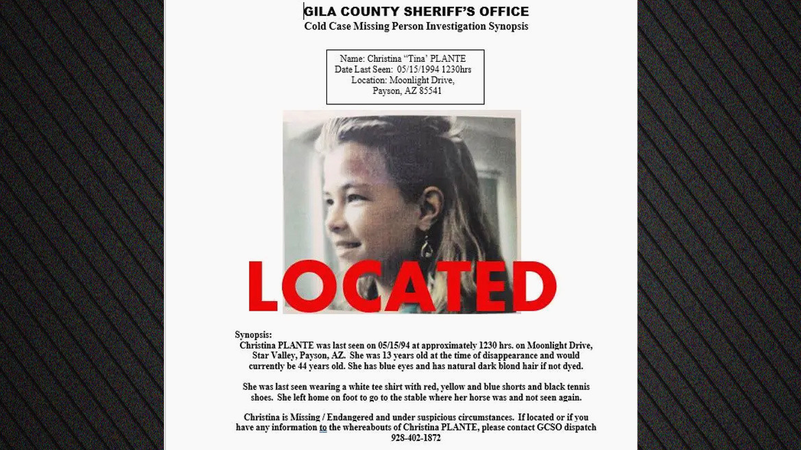 Μια συγκλονιστική εξέλιξη σημειώνεται στην Αριζόνα, όπου εντοπίστηκε ζωντανή μια 13χρονη που είχε εξαφανιστεί πριν από 34 ολόκληρα χρόνια. Η Κριστίνα Μαρί Πλαντ, τα ίχνη της οποίας χάθηκαν τον Μάιο του 1994 από την περιοχή Σταρ Βάλεϊ, βόρεια του Φοίνιξ, επανεμφανίστηκε, σκορπώντας ανακούφιση και αισιοδοξία.
