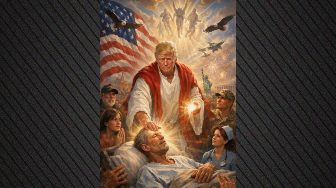 Επίσης, χθες Κυριακή, ο Τραμπ ανήρτησε στο Truth Social μια εικόνα δημιουργημένη μέσω τεχνητής νοημοσύνης (AI) στην οποία εμφανίζεται σαν τον Ιησού, προκαλώντας την αντίδραση ακόμη και από συντηρητικούς κύκλους στις ΗΠΑ που παραδοσιακά τον υποστηρίζουν. Η ανάρτηση αυτή, η οποία σήμερα διαγράφηκε, έδειχνε τον Τραμπ να φορά λευκό χιτώνα και κόκκινο μανδύα, κρατώντας το χέρι του στο μέτωπο ενός ασθενούς, πλαισιωμένος από ανθρώπους που προσεύχονται, με φόντο αμερικανική σημαία, το Άγαλμα της Ελευθερίας, καταδιωκτικά και αετούς.