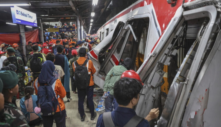 Η Άννα Πούρμπα, εκπρόσωπος της ινδονησιακής δημόσιας επιχείρησης σιδηροδρόμων KAI, ανέφερε ότι οι ομάδες διάσωσης δίνουν μάχη με τον χρόνο, καθώς δύο άνθρωποι παραμένουν μέχρι στιγμής παγιδευμένοι στα παραμορφωμένα βαγόνια. Το δυστύχημα σημειώθηκε αργά χθες κοντά στον σιδηροδρομικό σταθμό Μπεκάσι Τιμούρ, σε απόσταση περίπου 25 χιλιομέτρων ανατολικά της πρωτεύουσας.