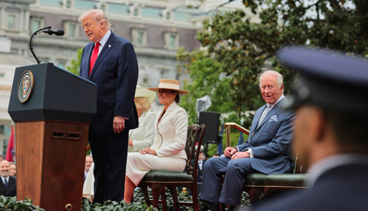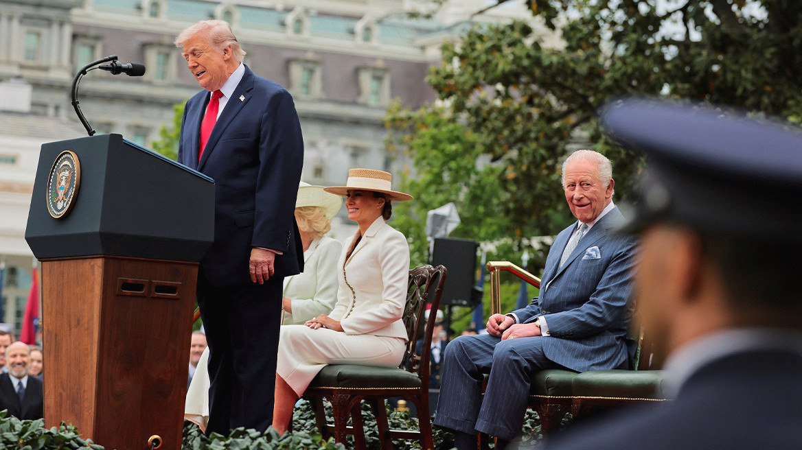 Η επίσημη υποδοχή του βασιλιά Καρόλου και της βασίλισσας Καμίλα από τον Ντόναλντ Τραμπ στον Λευκό Οίκο αποτέλεσε το επίκεντρο της δεύτερης ημέρας της επίσκεψης του Βρετανού μονάρχη στις ΗΠΑ. Ο Ντόναλντ Τραμπ καλωσόρισε το βασιλικό ζεύγος δηλώνοντας πως είναι ιδιαίτερη τιμή η παρουσία τους, ενώ δεν παρέλειψε να αστειευτεί για τον βροχερό καιρό στην Ουάσιγκτον, σχολιάζοντας χαρακτηριστικά: «Τι βρετανική μέρα που είναι σήμερα».