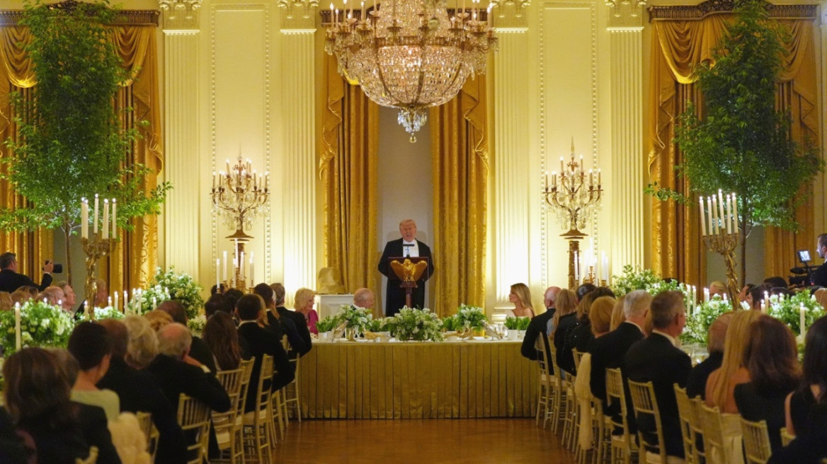 Η διαχρονική συμμαχία Ηνωμένου Βασιλείου και ΗΠΑ επιβεβαιώθηκε κατά τη διάρκεια του επίσημου δείπνου που παρατέθηκε στον Λευκό Οίκο προς τιμήν του βασιλιά Κάρολου Γ΄ και της βασίλισσας Καμίλα. Ο Donald Trump, στην ομιλία του στην αίθουσα δεξιώσεων της ανατολικής πτέρυγας, εξήρε τη συνεργασία μεταξύ των δύο κρατών, χαρακτηρίζοντάς την «πολύτιμη φιλία και αιώνιο δεσμό». «Η ιστορία δεν έχει γνωρίσει ισχυρότερη δύναμη από τον συνδυασμό του αμερικανικού πατριωτισμού και της βρετανικής υπερηφάνειας», δήλωσε χαρακτηριστικά, υψώνοντας πρόποση για τα 250 χρόνια αμερικανικής ελευθερίας.
