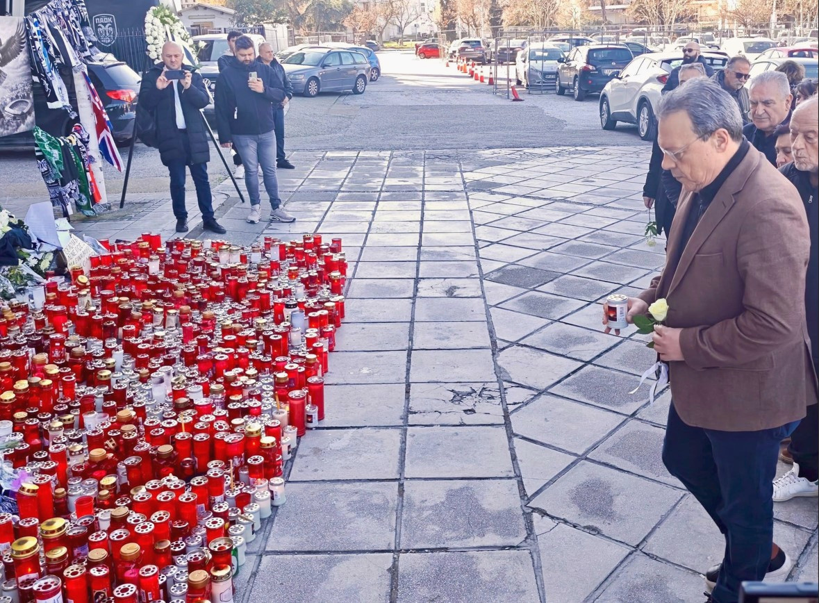 Ο Σωκράτης Φάμελλος κατέθεσε λευκό τριαντάφυλλο στο γήπεδο της Τούμπας, εκφράζοντας τη θλίψη του για την τραγωδία