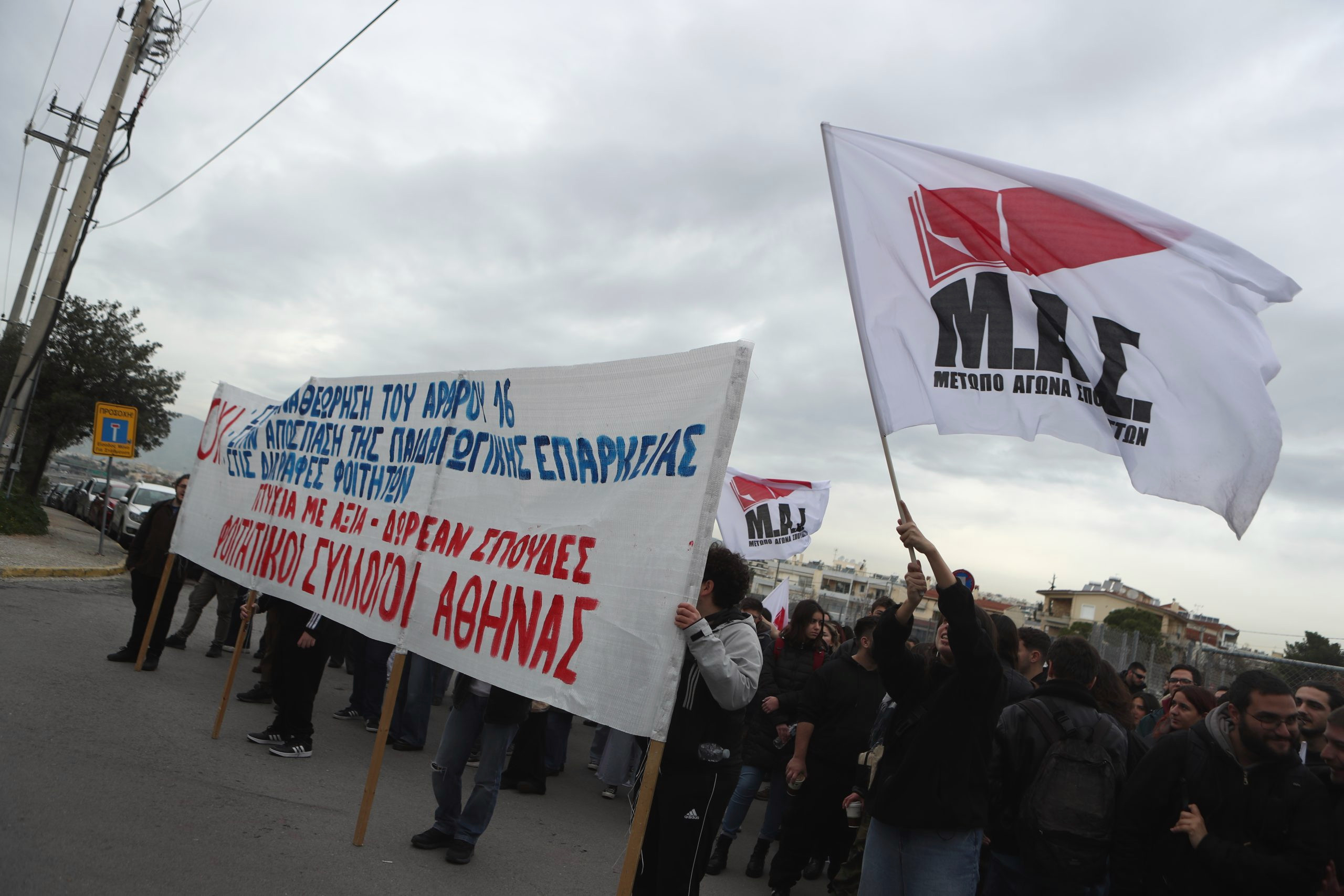 Φοιτητές πραγματοποίησαν συγκέντρωση διαμαρτυρίας έξω από το υπουργείο Παιδείας, εκφράζοντας την έντονη αντίθεσή τους στη διαγραφή φοιτητών και την επικείμενη αναθεώρηση του άρθρου 16 του Συντάγματος. Η κινητοποίηση χαρακτηρίστηκε ως «πρώτη απάντηση ενάντια στις εξαγγελίες της κυβέρνησης για την αναθεώρηση του άρθρου 16».