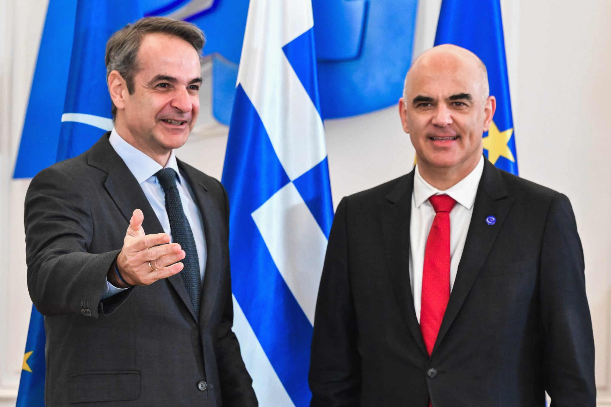 Ο Πρωθυπουργός Κυριάκος Μητσοτάκης υποδέχθηκε τον Γενικό Γραμματέα του Συμβουλίου της Ευρώπης, Alain Berset, στο Μέγαρο Μαξίμου, όπου συζητήθηκαν η πρόοδος της Ελλάδας, η αναθεώρηση του Συντάγματος και οι σύγχρονες προκλήσεις.