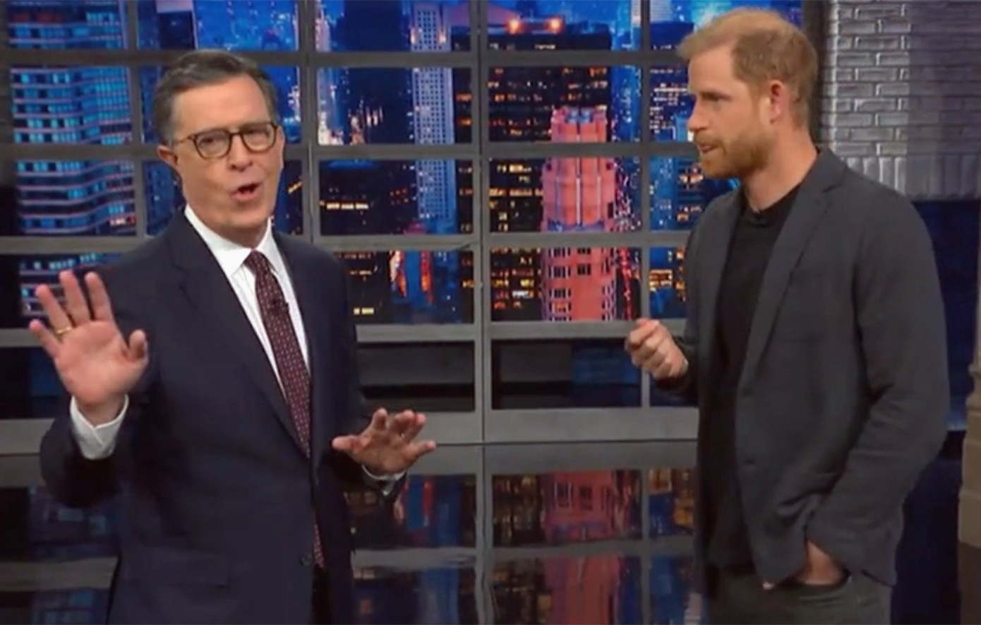 Ο πρίγκιπας Χάρι προκαλεί αντιδράσεις στο κοινό του Στίβεν Κολμπέρ με ατάκα για τον Τραμπ