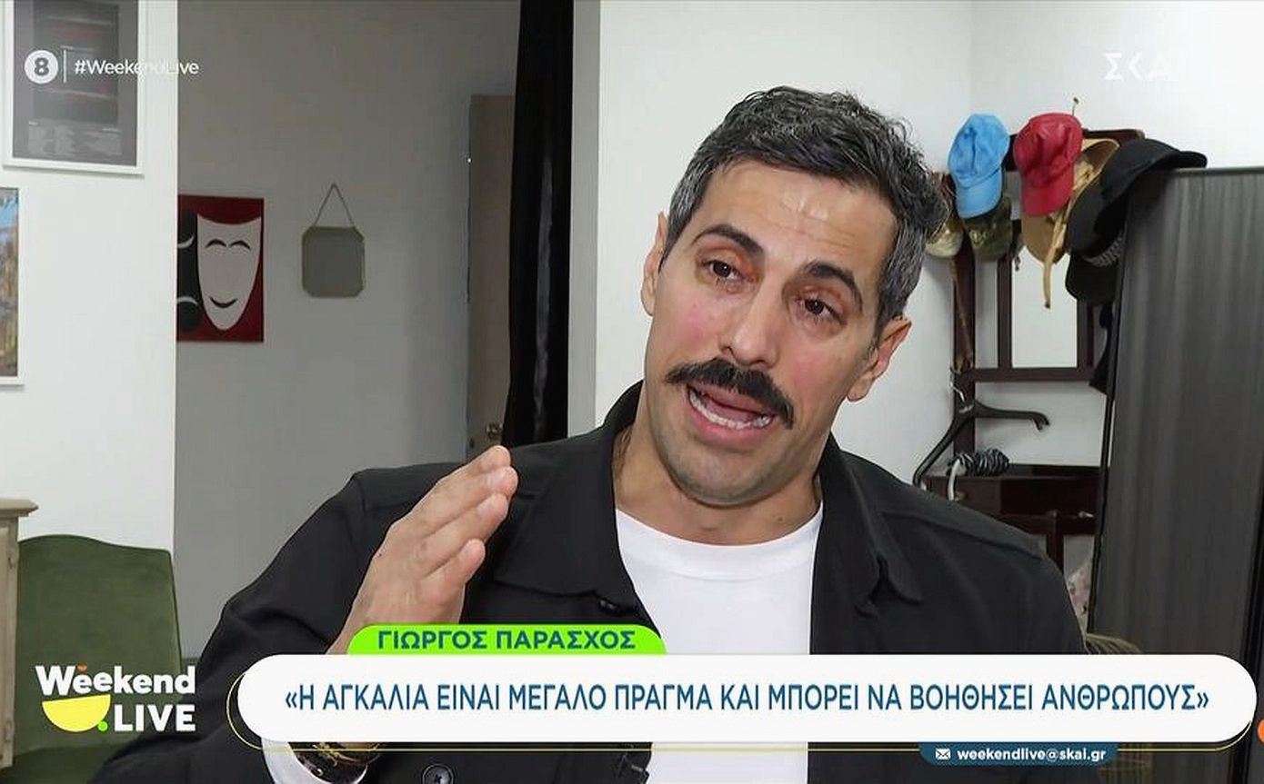 Η αναφορά στην αγκαλιά φαίνεται να τον συγκίνησε ιδιαίτερα, με τον Γιώργο Παράσχο να υπογραμμίζει τη σπουδαιότητά της. “Τελικά η αγκαλιά είναι πολύ μεγάλο πράγμα. Είναι πολύ βασικό το να υπάρχει στη ζωή μας η αγκαλιά. Μακάρι η αγκαλιά να μη χαθεί ποτέ μέσα στο σπίτι γιατί, αν παρατηρήσεις μέσα στο σπίτι μας, δεν υπάρχουν οι αγκαλιές. Το λέω και συγκινούμαι γιατί είναι το πιο μεγάλο και το πιο ουσιαστικό πράγμα στον κόσμο. Η αγκαλιά μπορεί να βοηθήσει ανθρώπους, η ουσιαστική αγκαλιά”, είπε με βουρκωμένα μάτια.