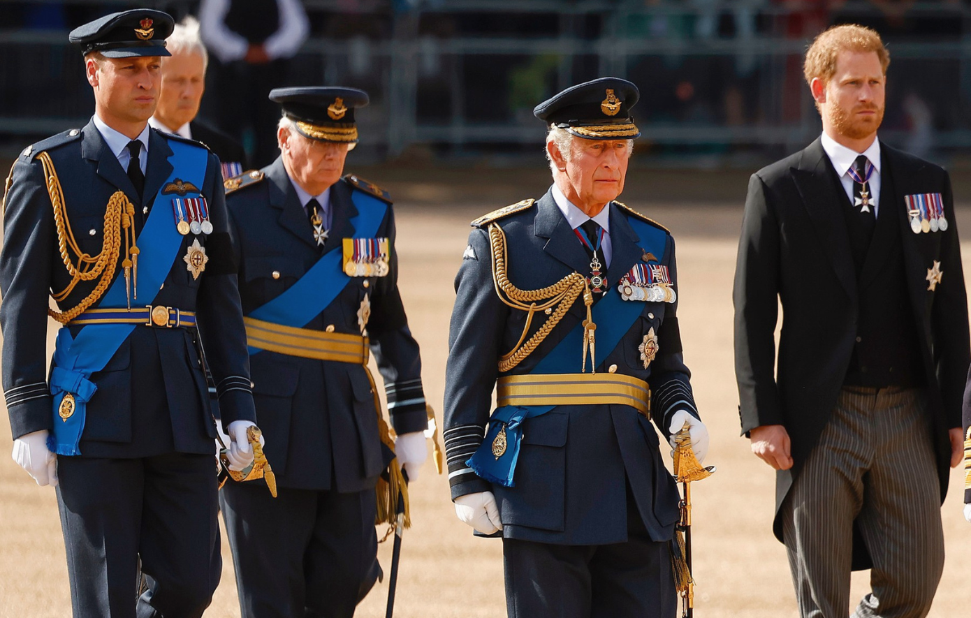Μια συμβολική στιγμή σημειώθηκε στις 14 Σεπτεμβρίου 2022, κατά τη διάρκεια της πομπής για τη μεταφορά του φέρετρου της βασίλισσας Ελισάβετ Β’ από τα Ανάκτορα του Μπάκιγχαμ στο Ουέστμινστερ Χολ. Ο βασιλιάς Κάρολος Γ’, ο πρίγκιπας Ουίλιαμ και ο πρίγκιπας Χάρι περπάτησαν μαζί, εκπέμποντας ένα μήνυμα ενότητας εν μέσω πένθους. Η εν λόγω πομπή υπήρξε η τελευταία δημόσια συνάντηση των τριών ανδρών, καθώς έκτοτε δεν έχουν βρεθεί όλοι μαζί. Η συνάντηση αυτή, η πρώτη μετά από 19 μήνες, αξιολογήθηκε ως «τεράστια πρόοδος» στην αποκατάσταση της σχέσης τους. Κατά τη διάρκειά της, ο Χάρι προσέφερε στον πατέρα του ένα προσωπικό δώρο: μια κορνιζαρισμένη φωτογραφία του Άρτσι και της Λίλιμπετ.