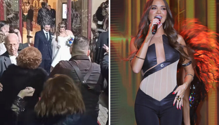 Η ζωντανή εμφάνιση της τραγουδίστριας στην πλατεία Δημαρχείου Περιστερίου συνέπεσε με την έξοδο των νεόνυμφων από την εκκλησία, δημιουργώντας ένα μοναδικό σκηνικό.
