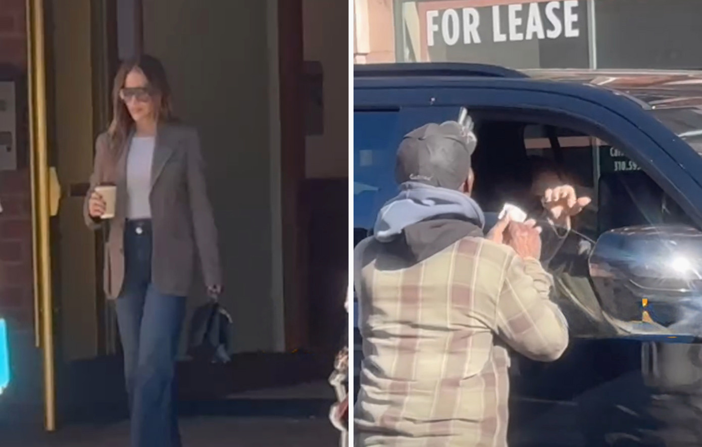 Ο άνδρας πλησίασε το όχημα της Λόπεζ και, εκφράζοντας την “αγάπη” του για την ποπ σταρ, η τραγουδίστρια έβαλε το χέρι της στην πανάκριβη μπλε τσάντα της, κατέβασε το παράθυρο και του έδωσε κάποια χρήματα. «Τζένιφερ, σ’ αγαπώ. Σε ευχαριστώ, Τζένιφερ», ανταποδόθηκε ο άνδρας, στέλνοντας φιλιά.