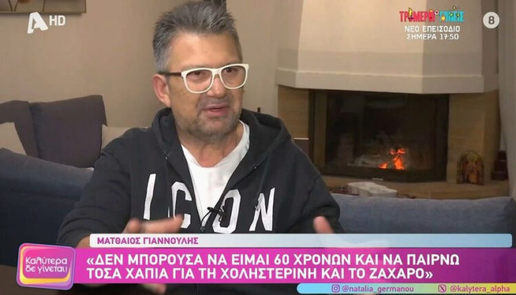 Ο τραγουδιστής Ματθαίος Γιαννούλης, μιλώντας στην εκπομπή «Καλύτερα Δε Γίνεται» την Κυριακή 25 Ιανουαρίου, αποκάλυψε τους λόγους που τον οδήγησαν σε σημαντική απώλεια βάρους. Εξομολογήθηκε ότι οι δυσκολίες στην καθημερινότητά του και η κούραση από την έλλειψη κινητικότητας τον είχαν καταβάλει.