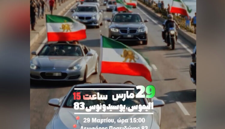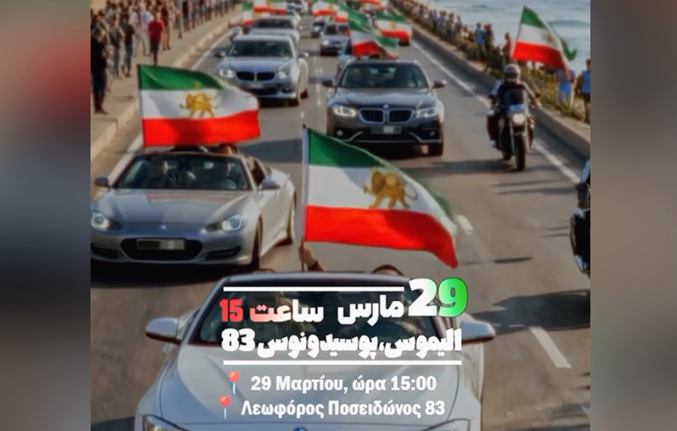Πραγματοποιήθηκε γνωστή η διοργάνωση μιας μηχανοκίνητης πορείας από Ιρανούς πολίτες που διαμένουν στην Ελλάδα, με σκοπό την υποστήριξη του Ρέζα Παχλαβί, διαδόχου του θρόνου του πρώην Αυτοκρατορικού Κράτους του Ιράν και επικεφαλή του Οίκου των Παχλαβί. Η εκδήλωση έχει προγραμματιστεί για τις 29 Μαρτίου, στις 3 το μεσημέρι.