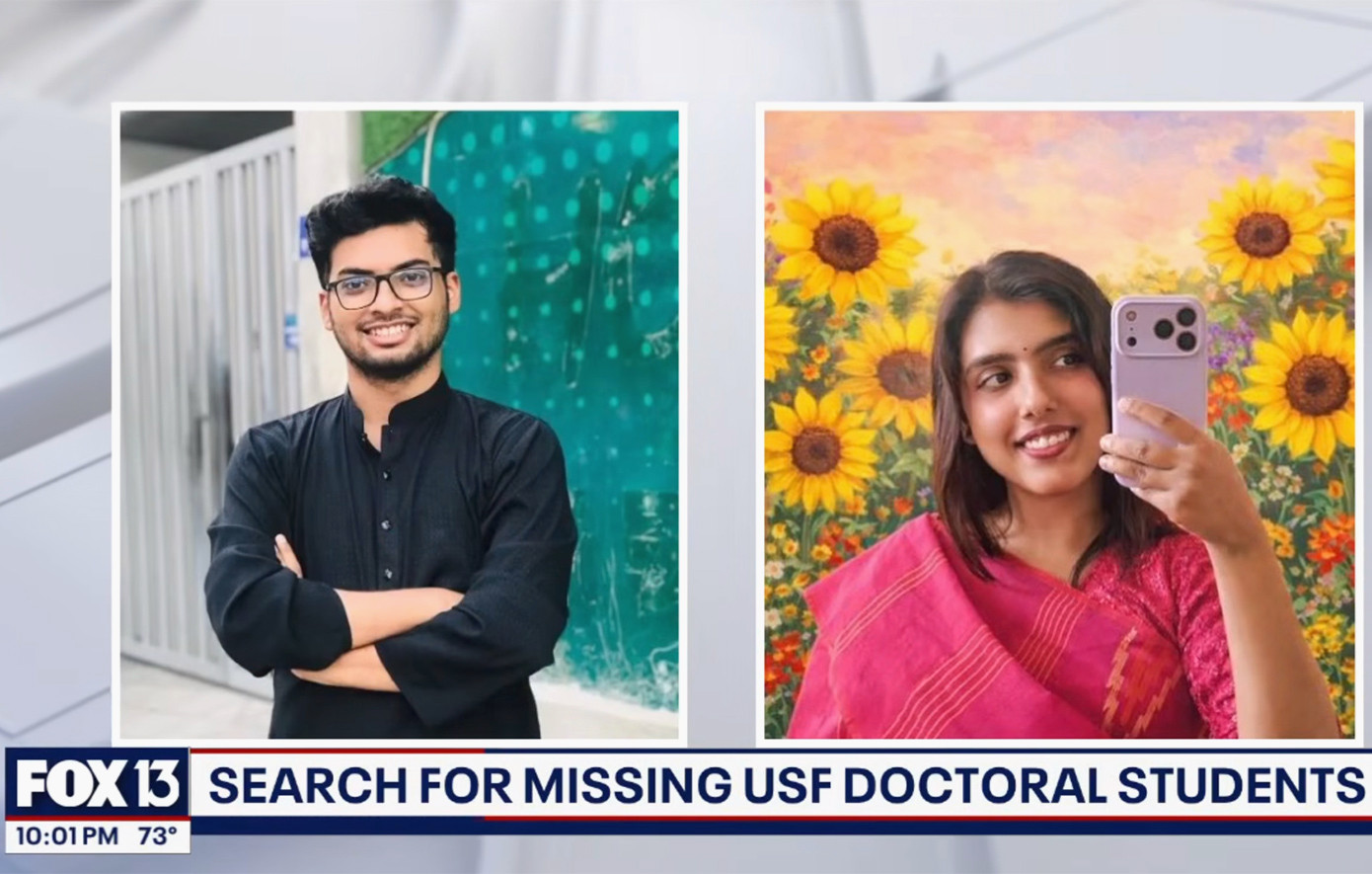 Μυστήριο καλύπτει την υπόθεση εξαφάνισης δύο διδακτορικών φοιτητών από το Μπαγκλαντές στο πανεπιστήμιο της νότιας Φλόριντας, οι οποίοι αγνοούνται εδώ και σχεδόν μία εβδομάδα. Η εξαφάνιση δύο διδακτορικών φοιτητών έχει προκαλέσει συναγερμό στις αρχές, με τους οικείους τους να κάνουν λόγο για μια ιδιαίτερα ύποπτη κατάσταση.