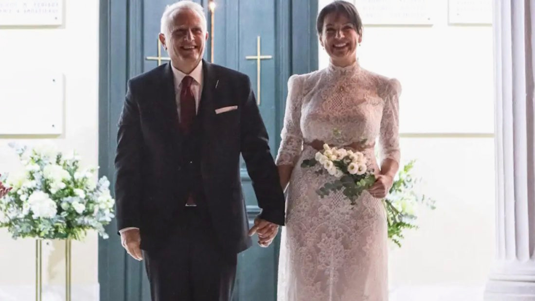 Η τελετή πραγματοποιήθηκε στον ιστορικό ναό της Αγίας Σοφίας, στην Ακρόπολη, παρουσία λίγων και εκλεκτών προσώπων από το στενό περιβάλλον του ζευγαριού. Κουμπάροι του γάμου ήταν οι στενοί φίλοι τους, Γιώργος Μακρόπουλος και η σύζυγός του Άννα. Σημαντική παρουσία στον γάμο αποτέλεσαν και τα παιδιά που έχουν αποκτήσει από τους προηγούμενους γάμους τους.
