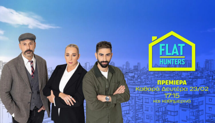 Ετοιμαστείτε για μια πρωτόγνωρη τηλεοπτική μονομαχία στον χώρο των ακινήτων. Το «Flat Hunters», το πρώτο τηλεπαιχνίδι που φέρνει αντιμέτωπους κτηματομεσίτες, κάνει πρεμιέρα την Καθαρά Δευτέρα, 23 Φεβρουαρίου, και θα προβάλλεται καθημερινά στις 17:15 στον ΑΝΤ1.