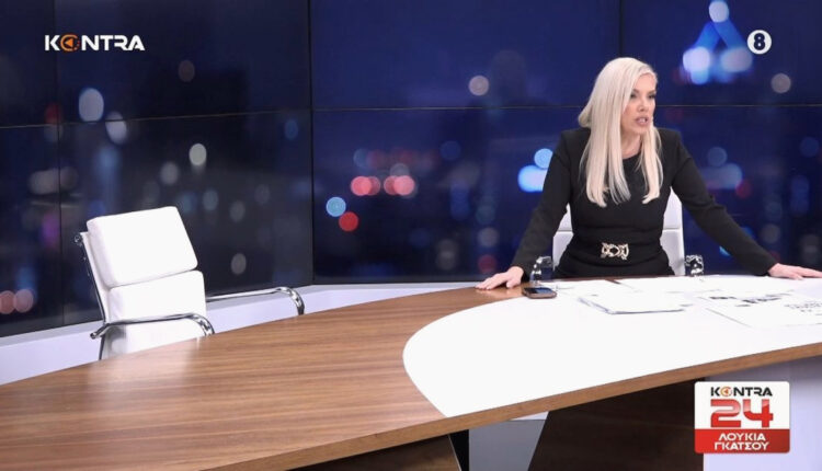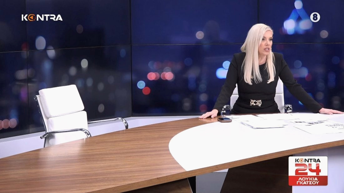 Η παρουσιάστρια, Λουκία Γκάτσου, ξεκίνησε την εκπομπή εξηγώντας την κατάσταση: «Κυρίες και κύριοι, καλησπέρα σας. Σας καλωσορίζω στο Kontra 24. Βλέπετε μια άδεια καρέκλα, την οποία σας δείχνουμε επειδή ο καλεσμένος μας, προφανώς, μετάνιωσε. Σε αυτή την καρέκλα θα βρισκόταν απόψε απέναντί μου ο Υπουργός Υγείας, Άδωνις Γεωργιάδης».