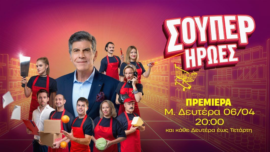 Η νέα κωμική σειρά του ΑΝΤ1, με τίτλο “Σούπερ Ήρωες”, κάνει πρεμιέρα τη Μεγάλη Δευτέρα, 6 Απριλίου, στις 20:00, προσφέροντας γέλιο κάθε Δευτέρα, Τρίτη και Τετάρτη. Η ιστορία διαδραματίζεται στο υποκατάστημα της αλυσίδας SUPER στο κέντρο της Αθήνας, έναν χώρο όπου η τρέλα, το χιούμορ και απρόοπτες καταστάσεις είναι καθημερινότητα.
