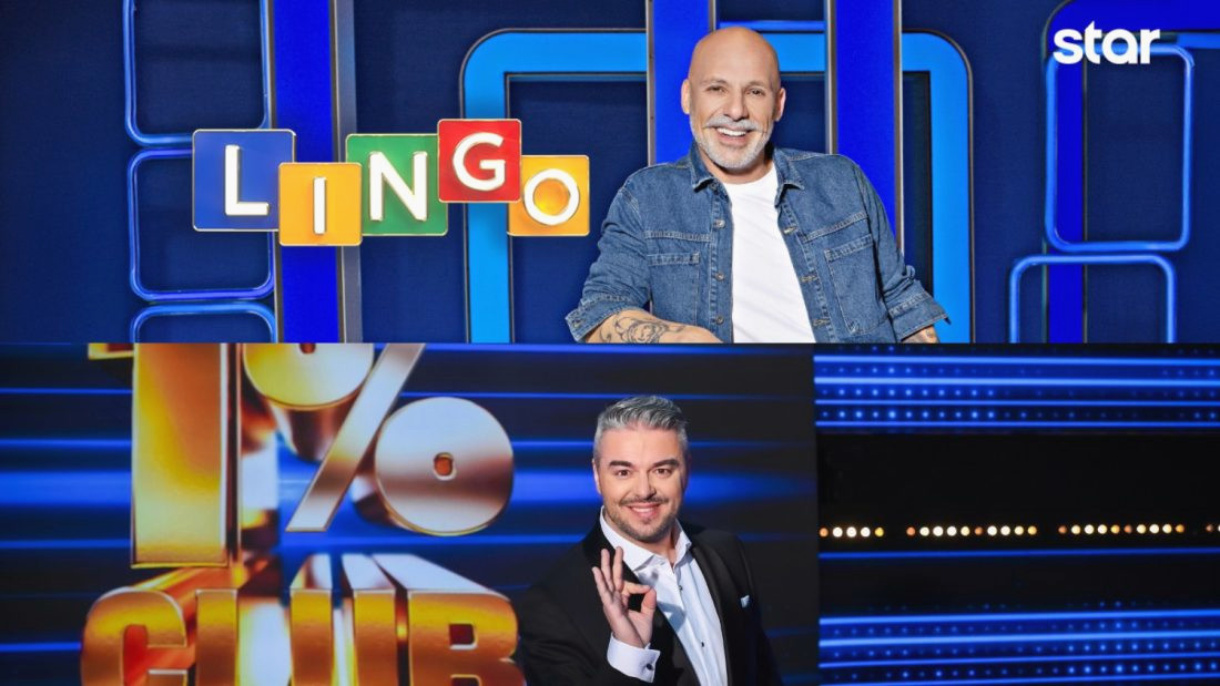 Το κανάλι Star ετοιμάζεται για διπλή πρεμιέρα, καλωσορίζοντας δύο νέα τηλεπαιχνίδια που φιλοδοξούν να κερδίσουν την προτίμηση του κοινού. Ο Νίκος Μουτσινάς αναλαμβάνει την παρουσίαση του “Lingo”, ενώ ο Πέτρος Πολυχρονίδης θα βρίσκεται στο τιμόνι του “1% Club”.