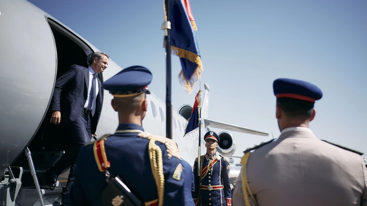 Ο Έλληνας πρωθυπουργός έφτασε στην Αίγυπτο με τον Γιώργο Γεραπετρίτη