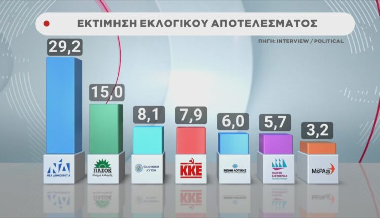 Δημοσκόπηση: Νέα Δημοκρατία διατηρεί ισχυρό προβάδισμα, ΣΥΡΙΖΑ σε χαμηλά επίπεδα
